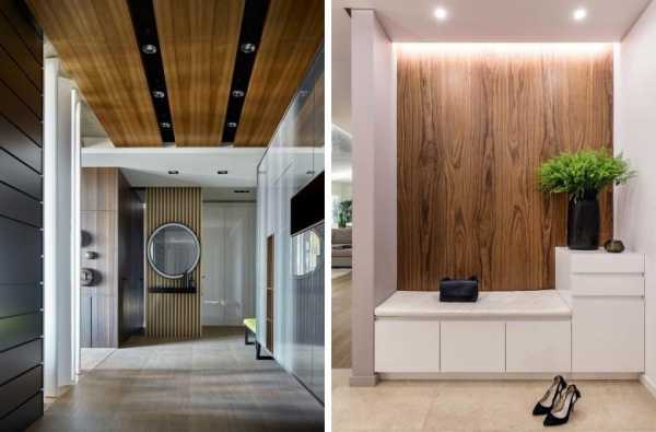 Для коридора стоит подобрать панели, отличающиеся от цвета пола. Лучше всего, если это будут светлые или средние тона дерева – так интерьер будет выглядеть тепло и уютно. Если вы хотите сделать темные стены, то обязательно сочетайте их с большими зеркалами, чтобы не «украсть» драгоценные метры и без того неширокого пространства.