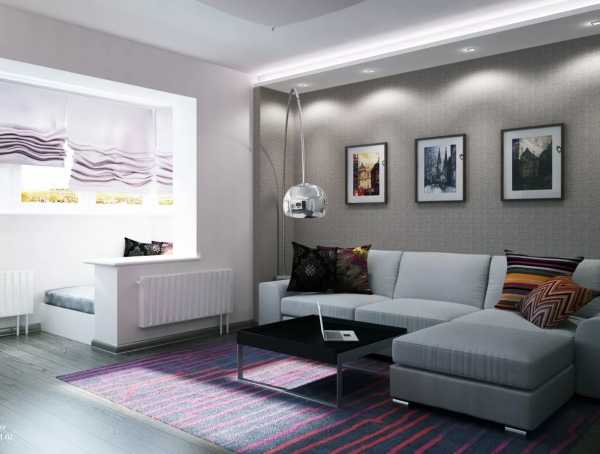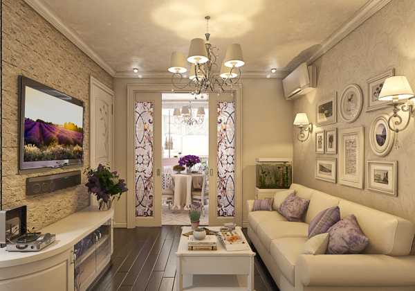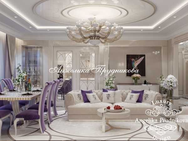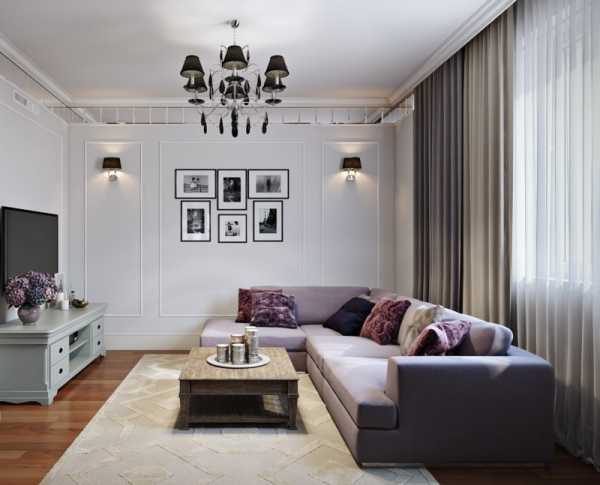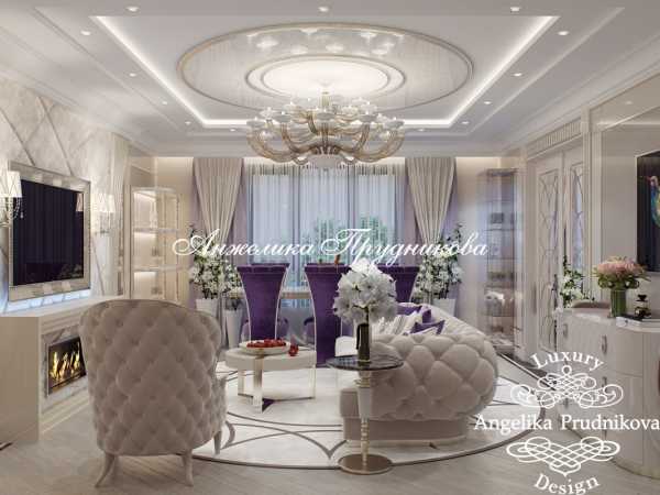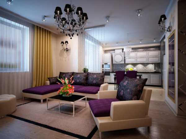 Интерьер трехкомнатной квартиры с сиреневыми акцентами