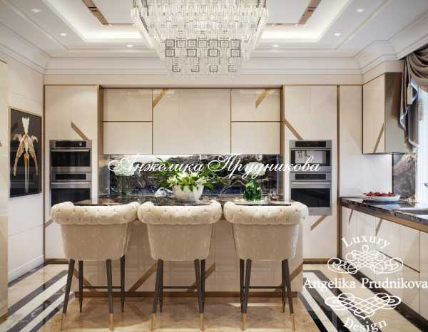 На фото: Дизайн современной кухни в ЖК «Фортепьяно»Барочный интерьер в золотистых тонах