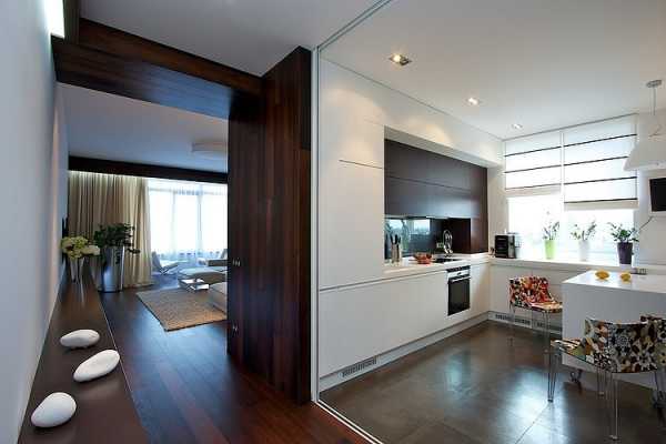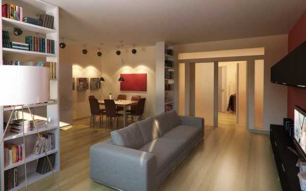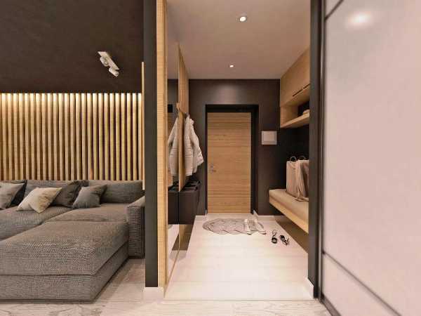 - В некоторых ситуациях рациональным является демонтаж перегородок между коридором и гостиной – открывающийся от входных дверей вид в холл избавляет от ощущения раздробленности квартиры.