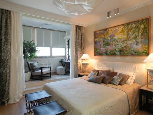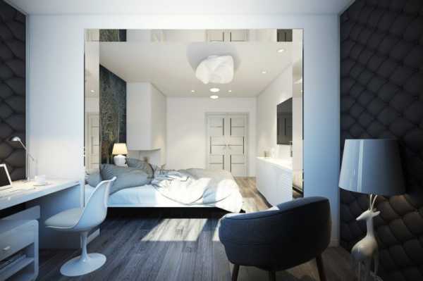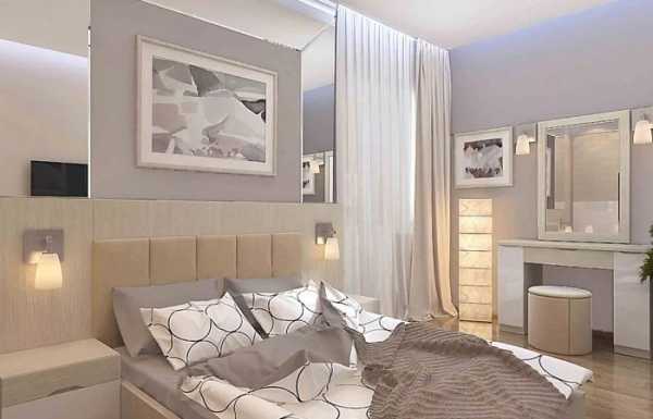 Наиболее оптимальное решение для спальни – отсутствие лишних вещей. Для этого достаточно установить в центральной части спальни кровать и прикроватные тумбочки. Уместным будет в этой зоне шкаф-купе и туалетный столик с зеркалом. Текстиль необходимо подбирать таким образом, чтобы он придавал целостность интерьеру.