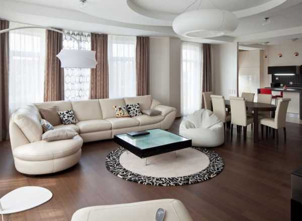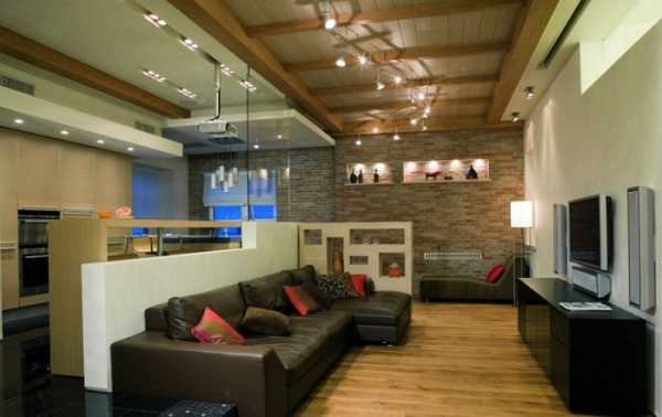 - Гостиную, в которой часто проходят танцевальные вечеринки, имеет смысл совместить с кухней посредством барной стойки.