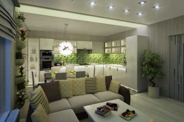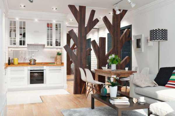 Довольно часто, для увеличения свободного пространства этой зоны, кухню совмещают с гостиной, разделяя их борной стойкой или иной декоративной перегородкой в интерьере.