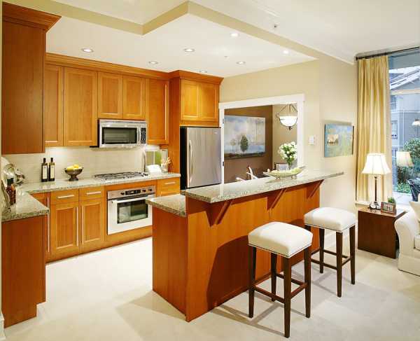 Для семьи с двух или трех человек отлично подойдет барная стойка и небольшой стол.
