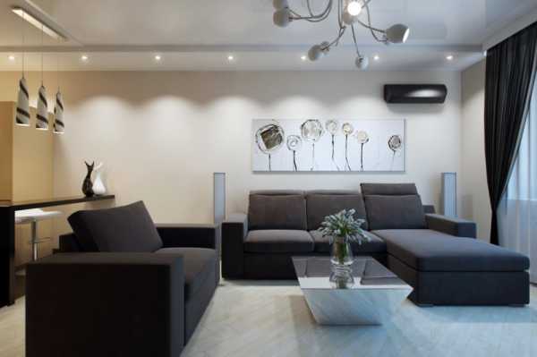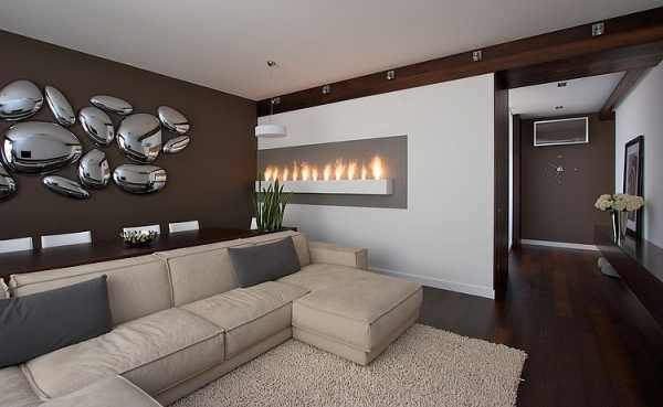 Одним из таковых решений является использование при оформлении самых разных контрастов. Например, при оформлении общей комнаты можно использовать контрасты светлого и темного, больших и малых величин. В больших помещениях такое сочетание смотрится очень хорошо.