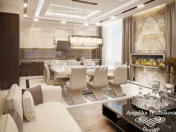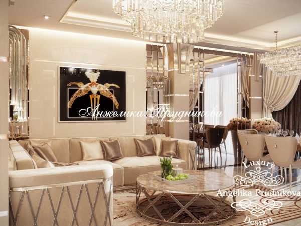 Интерьер 3-комнатной квартиры в стиле ар-деко в бежевых тонах