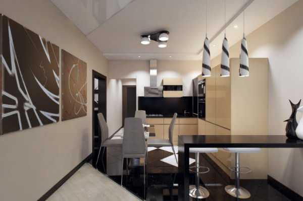 Далее идет помещение, где каждому проживающему в квартире хочется, чтобы там было уютно, тепло и все вокруг способствовало приятному приему пищи. То есть, интерьер 3-х комнатной квартиры включает обустройство яркой зоны, как кухня.