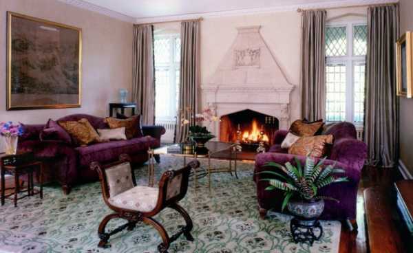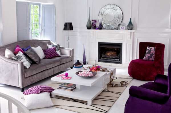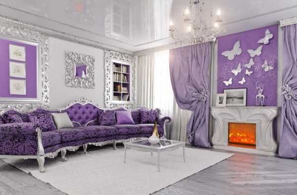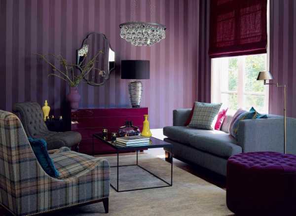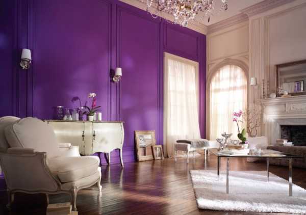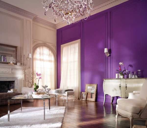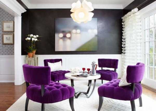 Фиолетовый цвет в интерьере гостиной