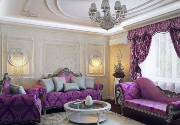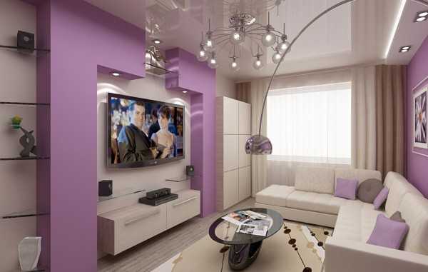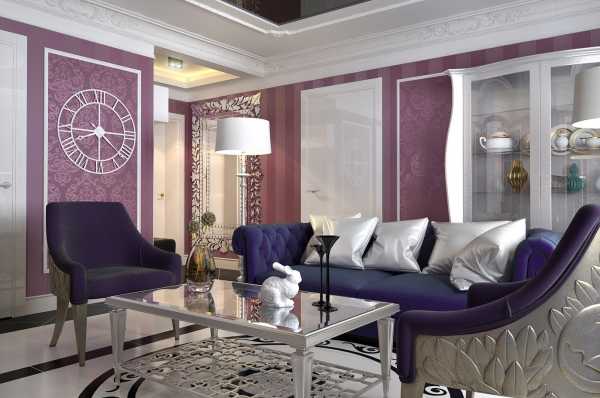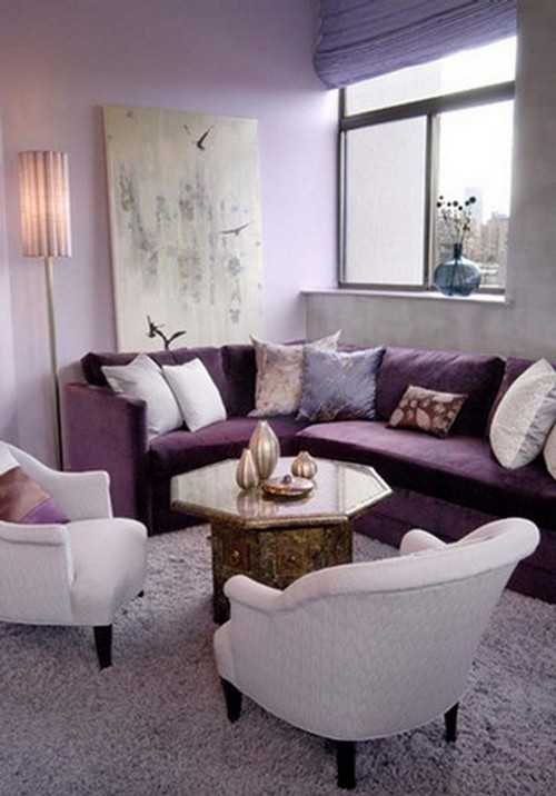 Интерьер гостиной в лиловом цвете