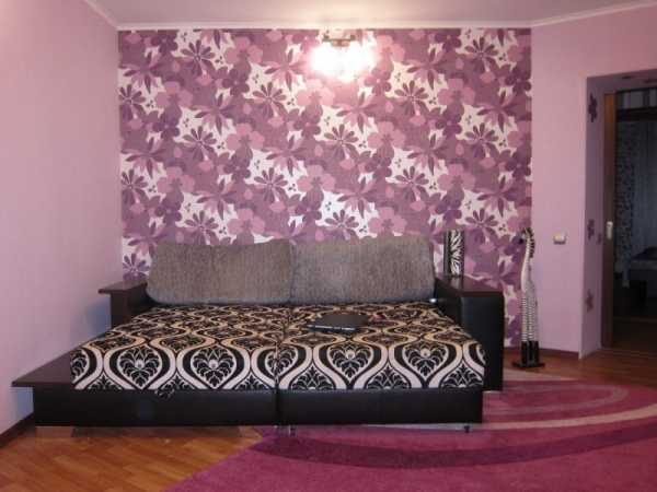Для того чтобы создать сиреневый дизайн гостиной, иногда достаточно оклеить стены обоями соответствующих тонов. Это самый простой и необременительный способ.
