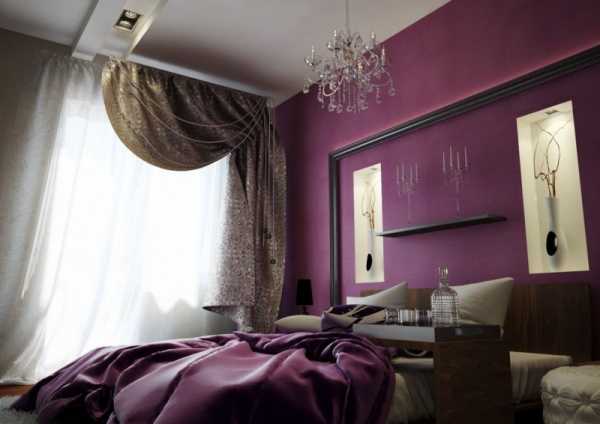 Фиолетовый цвет в интерьере спальни