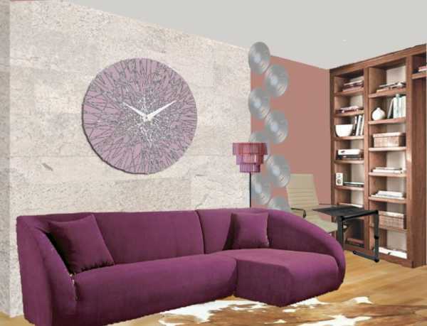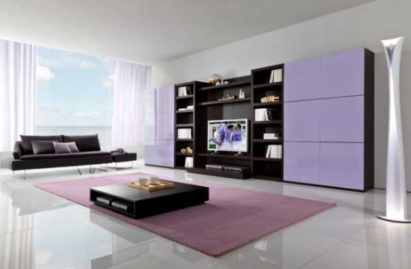 - Фиолетовый цвет в интерьере гостиной