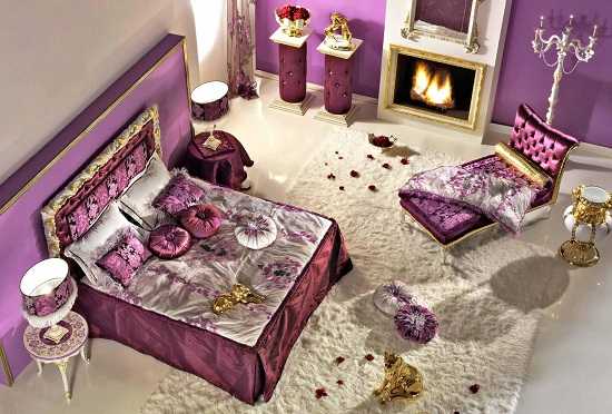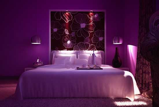 Фиолетовый цвет в спальне, его роль