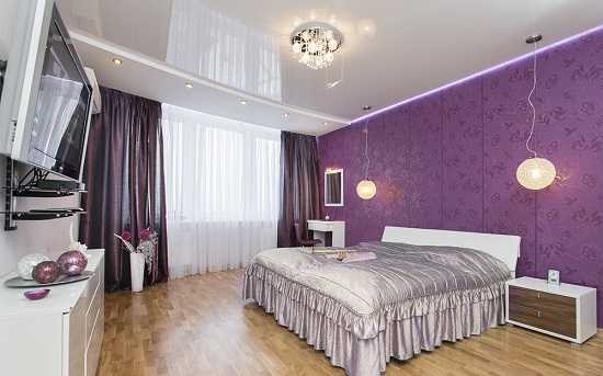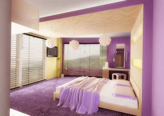 - Фиолетовый цвет в интерьере спальни