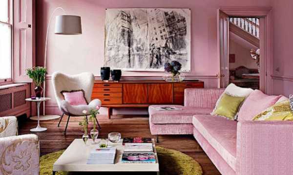 Для гостиной этот тон используют не так часто, как для спален и детских комнатах. Он более применим для современных вариаций гостиных в стиле классицизма, барокко, рококо, где он будет удачно сочетаться с серебром или золотом.