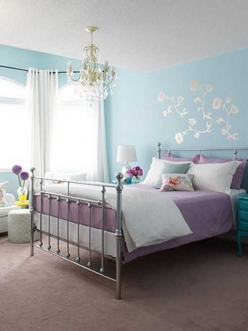 Сочетание цветов в интерьере лиловый и голубой