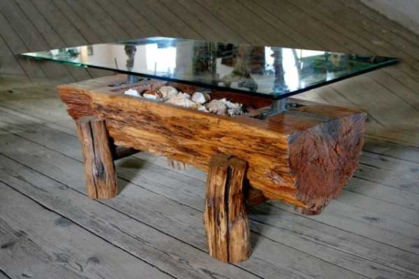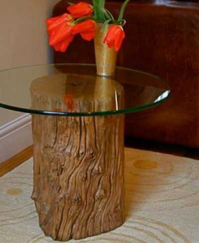 Имея такой столик, вы как бы вносите природу в свой дом. Он лучше подойдет для дачи или домика в деревне. Полено можно использовать как ножку для стола, прикрепив сверху столешницу, например из стекла. Этот столик выглядит более презентабельно.