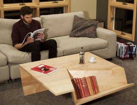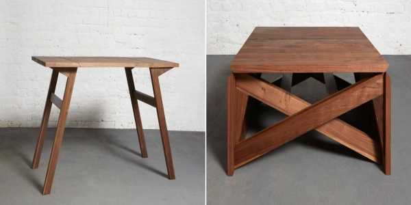 Два простых движения будет достаточно, что превратить этот кофейный столик в обеденный стол. Дизайн довольно простой, но не скрывает того факта, что он мультифункционален, а выставляет это напоказ. Он выполнен полностью из дерева, а именно ореха или дуба, благодаря чему может вписаться в большинство интерьеров.