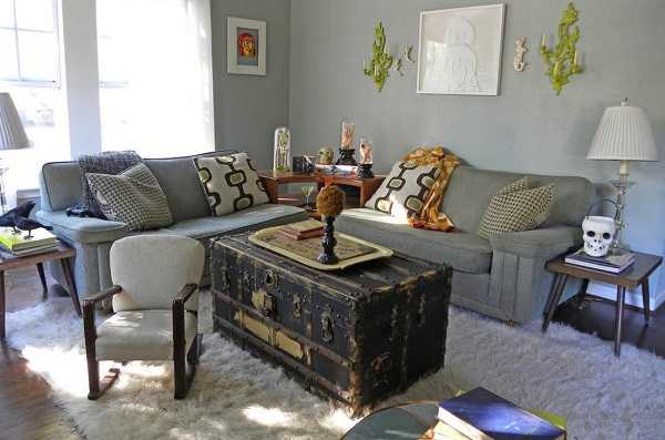 Столик-сундук. Креативно и неординарно в интерьере смотрятся столики, выполнены в стиле под сундук или изготовлены как настоящий сундучок.