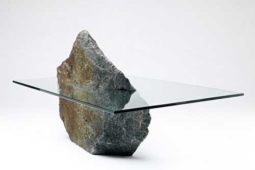 Идеально и невообразимо воплотились в этом столике сочетание двух противоположных материалов. Дизайнер, интегрировав в единое целое камень и стекло, создал стол, который будет интересен и функционален в любом интерьере и экстерьере.