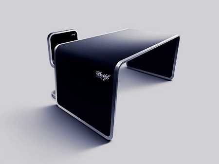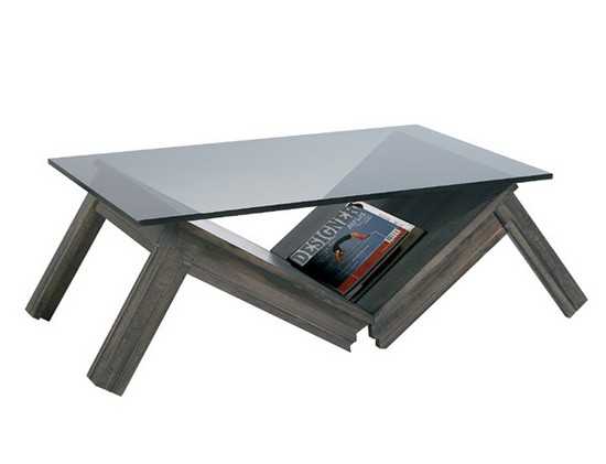 Интересный концепт журнального столика выполнен из канадского клена и дымчатого стекла. Благодаря V-образной форме нижней части столика, в нем удобно хранить журналы, книги и другие домашние мелочи. Представленный концепт ломает стереотипы восприятия мебели, возбуждая наше воображение и чувства.
