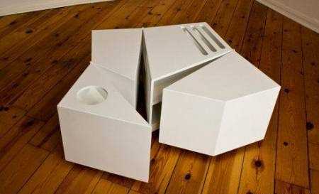 Этот столик-трасформер состоит из разных по форме четырех частей и имеет несколько вариантов складывания. Вы можете моделировать стол по своему желанию.