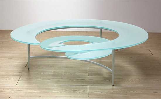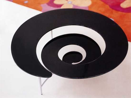 Эксклюзивными и оригинальными изделиями в современным интерьерах остаются столики необычных геометрических форм. Не исключением является и журнальный столик спиральной формы. Да, возможно он не многофункционален, но за ним Вы с комфортом выпьете чашечку чая или полистаете модный журнал. Спиральный стол станет идеальным декором помещения.