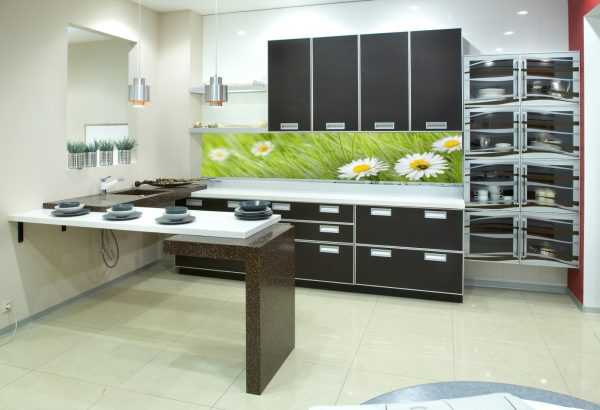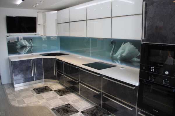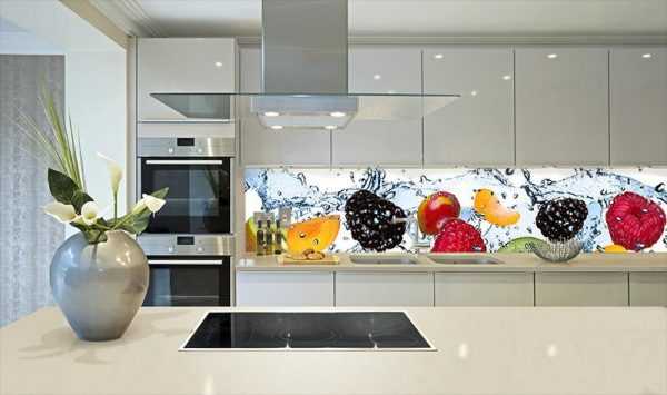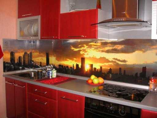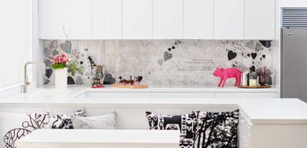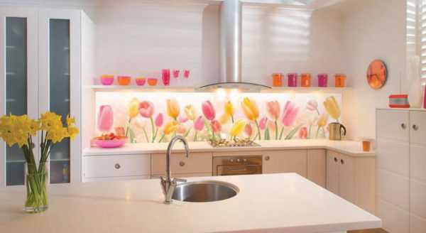 К плюсам такого подхода можно отнести разнообразие и количество дизайнерских решений. Самым ярким при этом является кухонный фартук из стекла карбонатного, на которое можно нанести любой узор или рисунок.