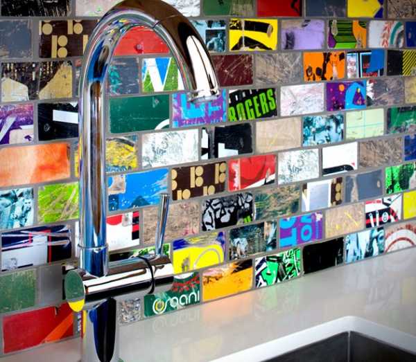 Из подручных предметов можно использовать ненужные или испорченные компакт-диски. Для этого понадобится много дисков, которые требуется разрезать на несколько кусочков. Эти части складывают мозаикой и приклеивают к чистой стене.
