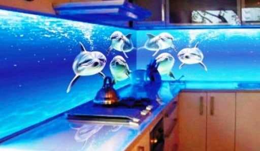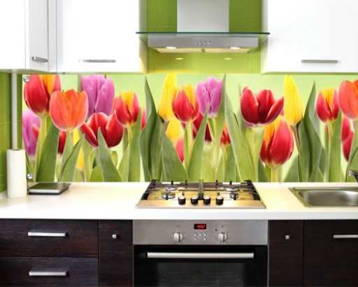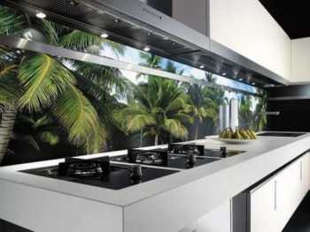 Важно! Стекло обычно имеет легкий зеленоватый оттенок, особенно, если его ширина соответствует принятым для кухонного фартука и составляет не менее 6 мм, поэтому об этом нужно помнить при выборе рисунка.
