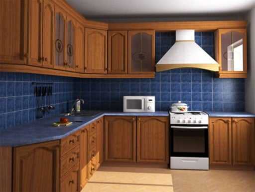 В интерьере этой кухни нет ярких красок, необычных картин и дорогостоящих материалов. Необходимый эффект достигается за счет благородного цветового сочетания коричневого и синего