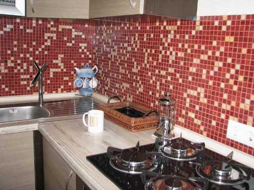 Особых сложностей не возникает и при использовании в качестве материала для фартука керамической кафельной плитки, проделать все необходимые операции можно с минимальным опытом в строительной сфере.