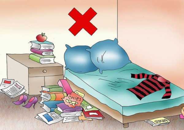 Нельзя допускать скопления или нагромождения предметов и вокруг кровати, тумбочки, шкафы, полки вблизи кровати должны находиться в минимальном количестве.Если вы живете в двухэтажном доме, нужно проследить, чтобы ни над, ни под кроватью не находился туалет или плита.