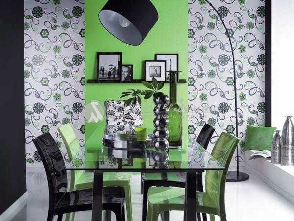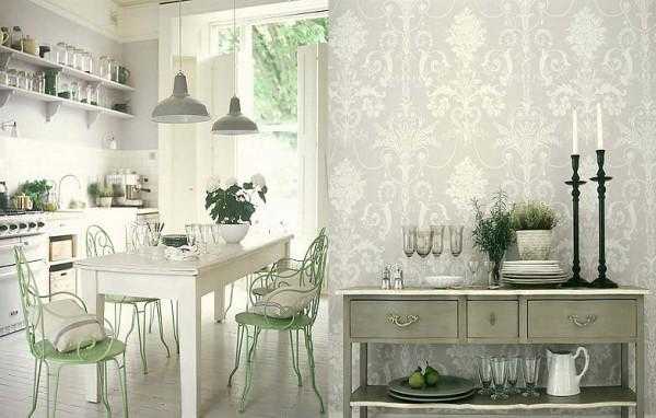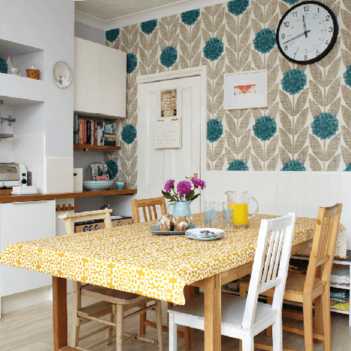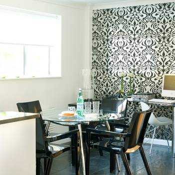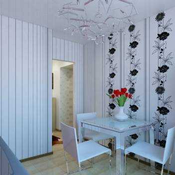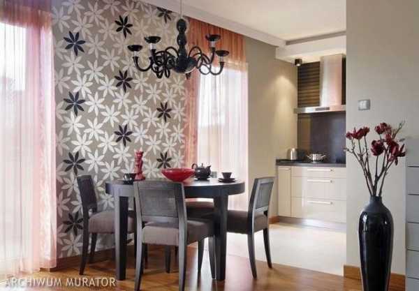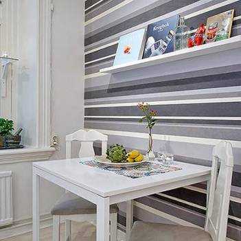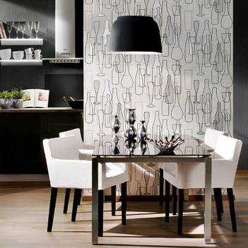В обеденной зоне можно поклеить обои более светлых тонов, чем на остальной поверхности стен, так как это пространство менее маркое.