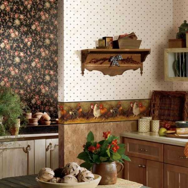 Если вы беспокоитесь о том, насколько уместным будет использование комбинирования обоев на кухне по горизонтали, то нужно отметить, что беспокойство это – абсолютно напрасное. Найти вполне приемлемое решение можно практически для любого стиля. Основной задачей данного приема является деление стены на несколько слоев по вертикали.