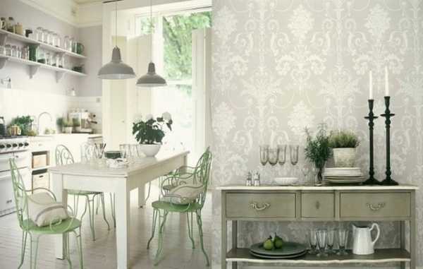 Всем известно, что светлые холодные тона раздвигают стены визуально, увеличивая размер помещения. Если ваша кухня недостаточно освещена, выбирайте теплые пастельные тона, а для крупномасштабных кухонь отлично подойдут темные насыщенные оттенки обоев. С их помощью можно создать таинственную и приглушенную атмосферу. Используя обои разных расцветок, можно разделить кухню на функциональные зоны.