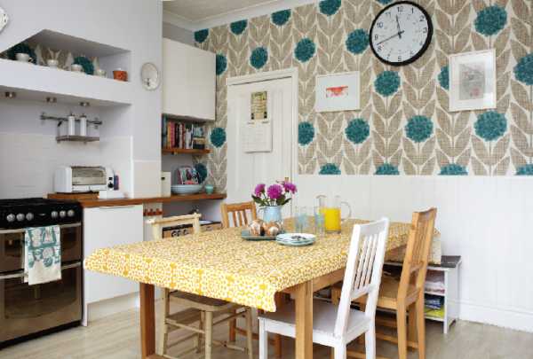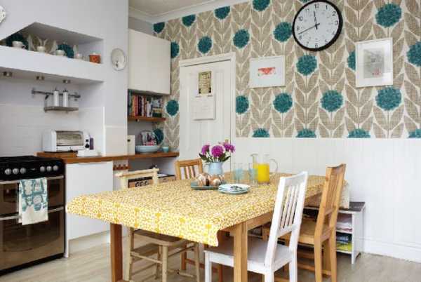 Комбинирование обоев на кухне: фото и идеи интерьера