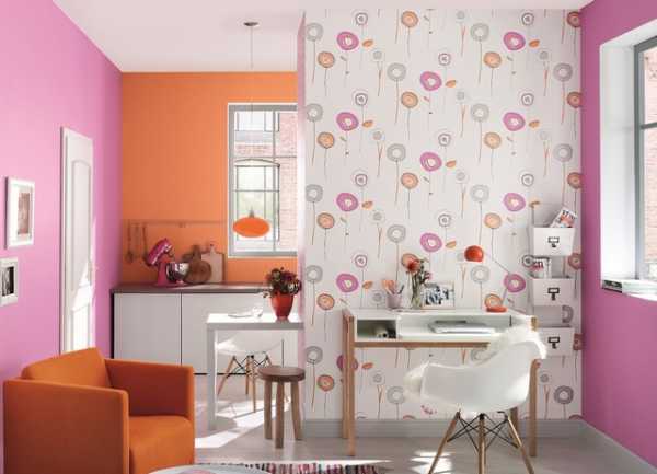 | Создание доминантной стены | Одна из стен комнаты, либо какая-то ее часть, может стать акцентной. Это становится возможным благодаря ее выделению при помощи контрастных обоев. |