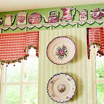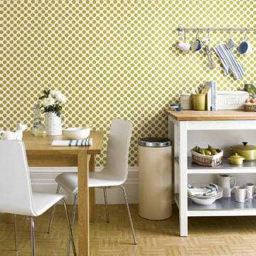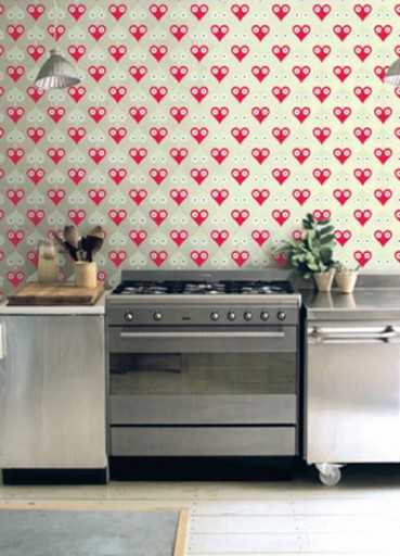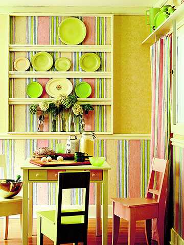 Используя геометрический рисунок (клетка, полоска, горох), вы задаете четкий ритм. Сложно сказать, радикальный это метод выбора обоев или спокойный. Все зависит от величины рисунка и степени контрастности. Лучше не оклеивать клеткой или горохом всю кухню, а использовать такие обои в виде вставок или панелей на какой-либо стене.