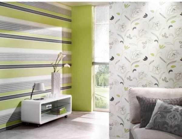Применение обоев двух видов позволит скрыть недостатки планировки
