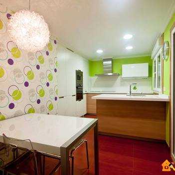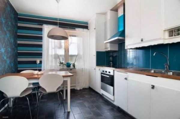 Не стоит также забывать и о цвете и фактуре одежды для стен. Темные цвета визуально уменьшают площадь, а светлые увеличивают. Но не стоит брать совсем светлые маркие цвета для зоны приготовления еды, в это место лучше подобрать обои с небольшим рисунком, чтоб капли или некоторые помарки не были сильно заметны.