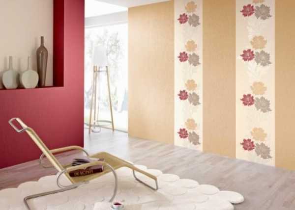 Немаловажным является сочетание материала по фактуре, к примеру, использование бумажных и виниловых, текстильных и фотообоев, тиснённых и шёлковых.