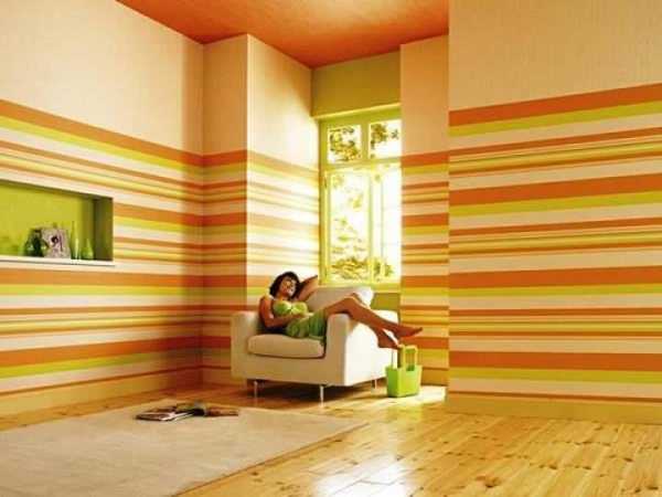 - горизонтальные полосы придают помещению просторности, но при этом садят потолок;
