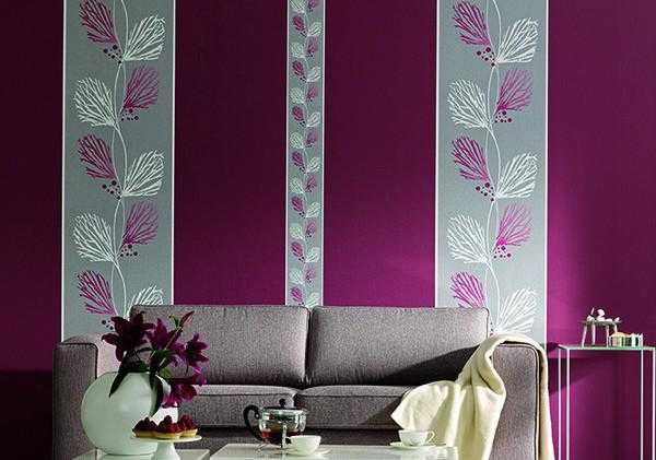 Существует несколько вариантов оформления вертикальными полотнищами. Это чередование одной или двух полос одного вида с одной или двумя полосами другого вида обоев. При этом обои-компаньоны должны иметь одинаковую структуру и сочетание цветов, например, бумажные обои светло-болотного цвета хорошо смотрятся со светло-бежевыми обоями с притом того же колера, что и однотонные. Так же существует вариант с выделением части стены одним видом покрытия, с окантовкой параллельной окантовкой обоями другого цвета.