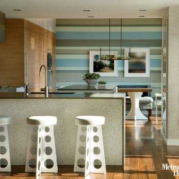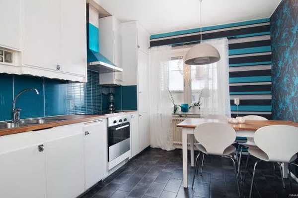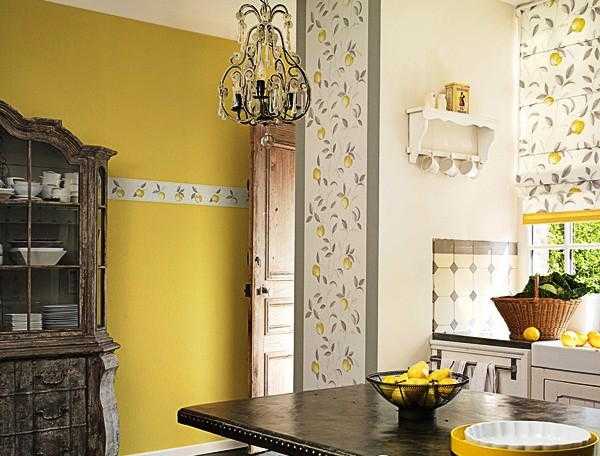 Правильное сочетание обоев двух цветов для кухонного пространства