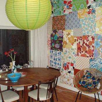 Если применяются яркие «лоскуты», то нужно следить за тем, чтобы они не привлекали к себе все внимание. Смешивание разных частей не должно привести к созданию «винегрета». Что касается цветов, то разрешена вся палитра. В конечном итоге должна получиться стена в виде хэнд-мэйд одеяла.