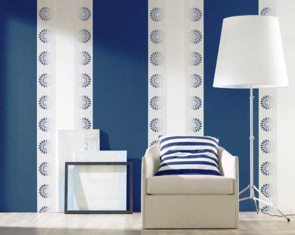 - Если одна из стен оклеивается небольшой вертикальной полоской обоев достаточно насыщенного цвета, а на противоположной стене клеится несколько полосок обоев с разной толщиной, это говорит про асимметричность деления стен в комнате. Данный прием способен привнести в антураж помещения определенный динамизм.