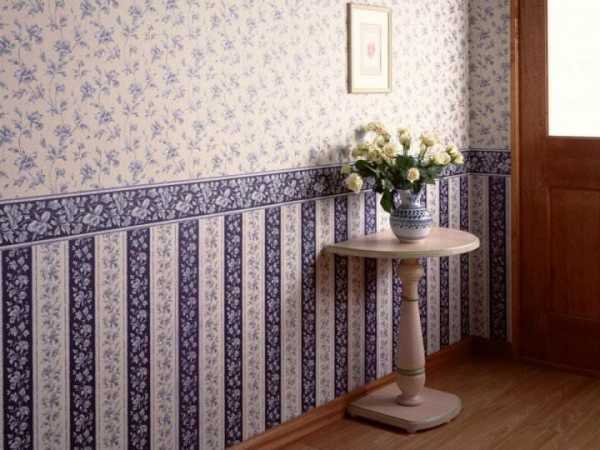 - Верх может быть однотонным, в то время, как низ будет поклеен обоями в полоску.
