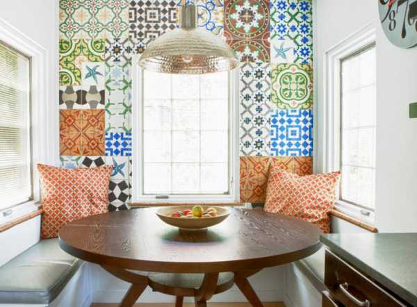 | Обрамление ниш, колон | Акцент делается на интересных элементах кухни, подчёркивая и выделяя их. Можно использовать контрастные цвета или яркий орнамент |