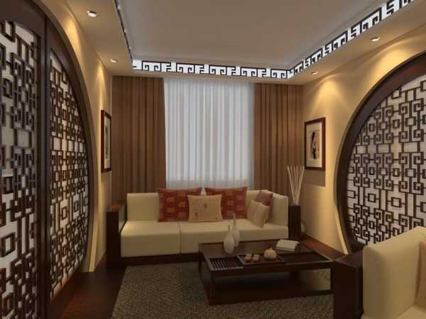 Если каждый угол зала будет иметь свою функциональность, то можно скрыть одну из зон ширмой, в тон стен. Таким образом, можно скруглить угол, и визуально комната станет более просторной.